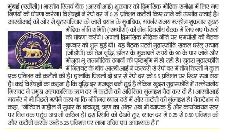 आरबीआई आज करेगा मौद्रिक नीति की घोषणा